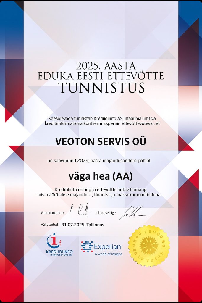 Заказать можно по тел. +372 5107445, по мейлу info@veoton.ee